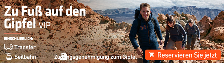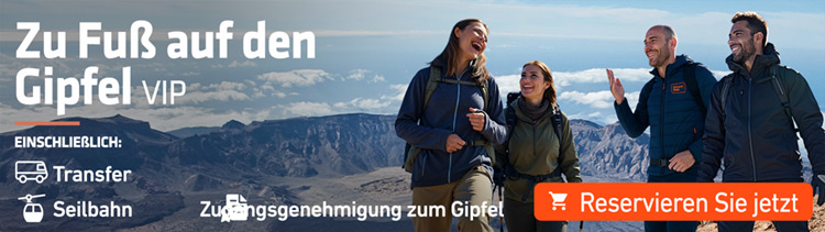 Und wenn Sie Exzellenz und Exklusivität suchen, dann verpassen Sie keinesfalls: Den Ausflug auf den Gipfel des Teide VIP, der das gleiche beinhaltet, wobei der Guide jedoch exklusiv für Sie zur Verfügung steht. Sie können Ihn alles fragen was Sie wollen, was Sie, sobald Sie einen Fuß auf den überraschenden Wanderweg Telesforo-Bravo gesetzt haben, zu schätzen wissen werden.