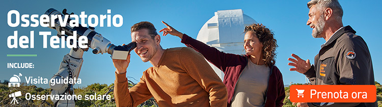 L’Astronomic Tour sul Teide è la nostra escursione astronomica 2 in 1 che combina la visita all’Osservatorio del Teide di sera con l’osservazione delle stelle. Si offre, inoltre, con trasporto da diversi punti dell’isola di Tenerife.