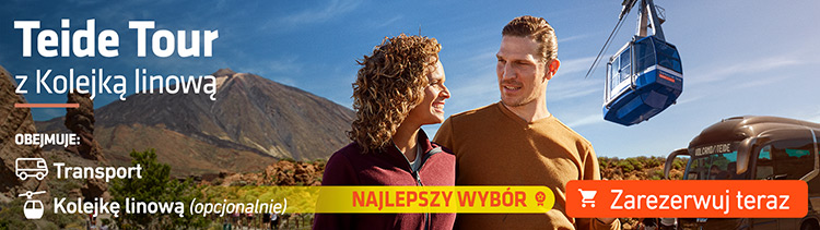A jeśli wolisz odwiedzić Teide i Centrum Zwiedzających Teide Legend w ramach wycieczki, zawsze możesz zarezerwować Teide Tour, naszą zorganizowaną wycieczkę z przejazdem kolejką linową lub bez oraz codziennymi odjazdami z różnych miejsc na wyspie, która ponadto obejmuje bezpłatny wstęp na wystawę „Nauka i legenda” w Centrum Zwiedzających Teide Legend.