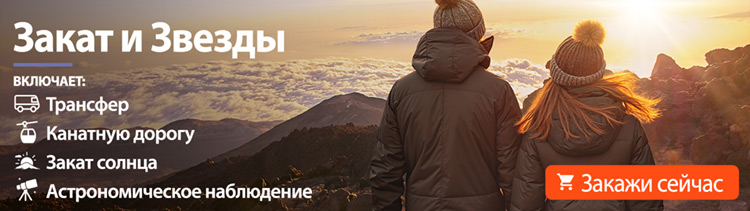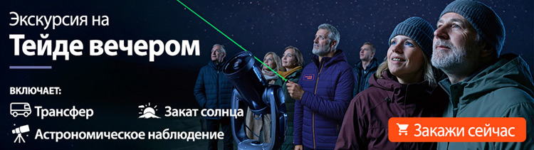 Для тех, кто предпочитает задержаться на Тейде подольше и насладиться видом на звезды из этого привилегированного места в мире, экскурсия «Закат и звезды на Тейде» включает вход на канатную дорогу, чтобы увидеть закат, и последующее наблюдение за звездами в телескопы под руководством профессионалов.