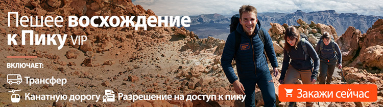 Если вы предпочитаете добираться до канатной дороги в составе экскурсии с отправлением из основных туристических центров Тенерифе и открыть для себя тропу к смотровой площадке Пико-Вьехо с цифровым аудиогидом, мы рекомендуем экскурсию Тейде-Тур.